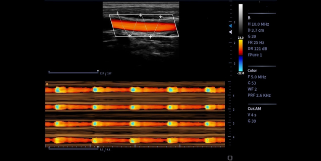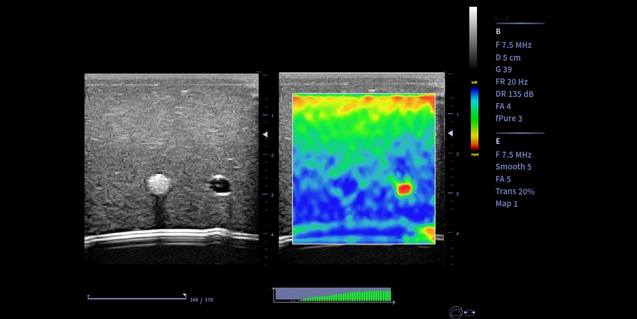 256阵元数,61.5*23.4成像范围,更适用于乳腺扫查。